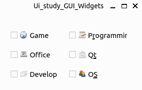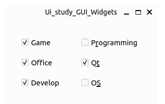 QCheckBox 와 QButtonGroup 를 이용한 예제를 작성해 보도록 하자. 이번 예제에서는QCheckBox 에서 이미지 리소스를 사용하는 방법도 함께 알아보도록 하자.