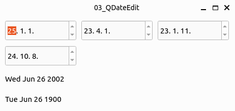 - QDateEdit는 QDate클래스에 설정된 날짜를 표시할 수 있다.