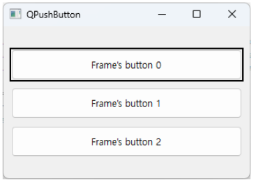 - QPushButton 위젯 바깥쪽에 Outer Line을 그리기 위해 QFocusFrame를 사용하는 방법은 다음과 같다.