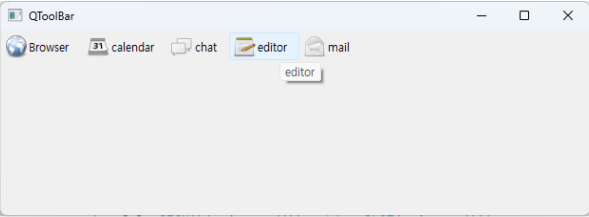 - QToolBar 위젯은 윈도우 상에 툴 메뉴 바와 같은 GUI를 제공한다.