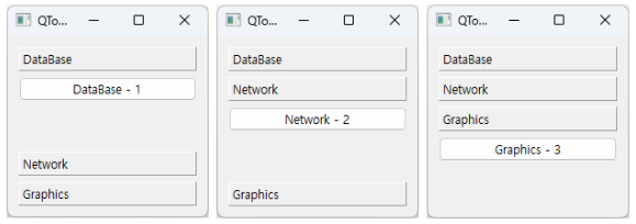 - QToolbox 클래스 위젯은 위젯 아이템들을 새로 방향 탭 컬럼 형태로 GUI를 제공한다.