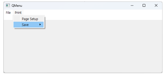 - QMenu 위젯은 메뉴를 만들기 위해 제공하는 위젯으로써 addAction( )과 addMenu( ) 멤버 함수를 제공한다.