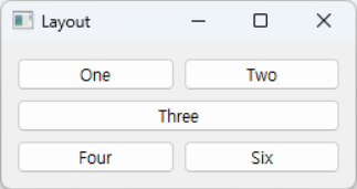gridLayout->addWidget(gbtn[2], 1, 0, 1, 2); // 위치 (1, 0), 2개의 열을 차지
