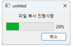 pd = new QProgressDialog("파일 복사 진행사항", "취소", 0, 100);