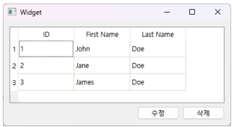 | QSqlTableModel | 테이블의 데이터를 READ/WRITE하기 위해 적합. |