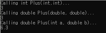 Console.WriteLine("Calling double Plus(int a, double b)...");