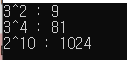 Console.WriteLine($"{3}^{4} : {3.Power(4)}");