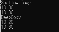 - 깊은 복사는 heep영역을 새로 만들고 거기서 클래스를 복사해와서 사용하고 버리기 때문에, 다른 인스턴스과 값을 공유하지 않습니다.