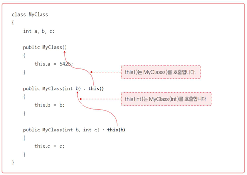 public MyClass(int b, int c) : this(b)