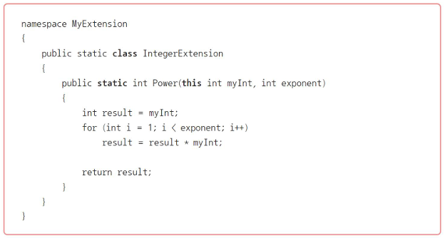 public static int Power(this int myInt, int exponent)